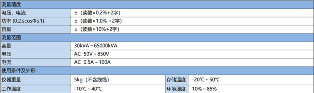 1.變壓器容量測(cè)量:無(wú)需外接電源,即可實(shí)現(xiàn)快速測(cè)量和型號(hào)判斷。
